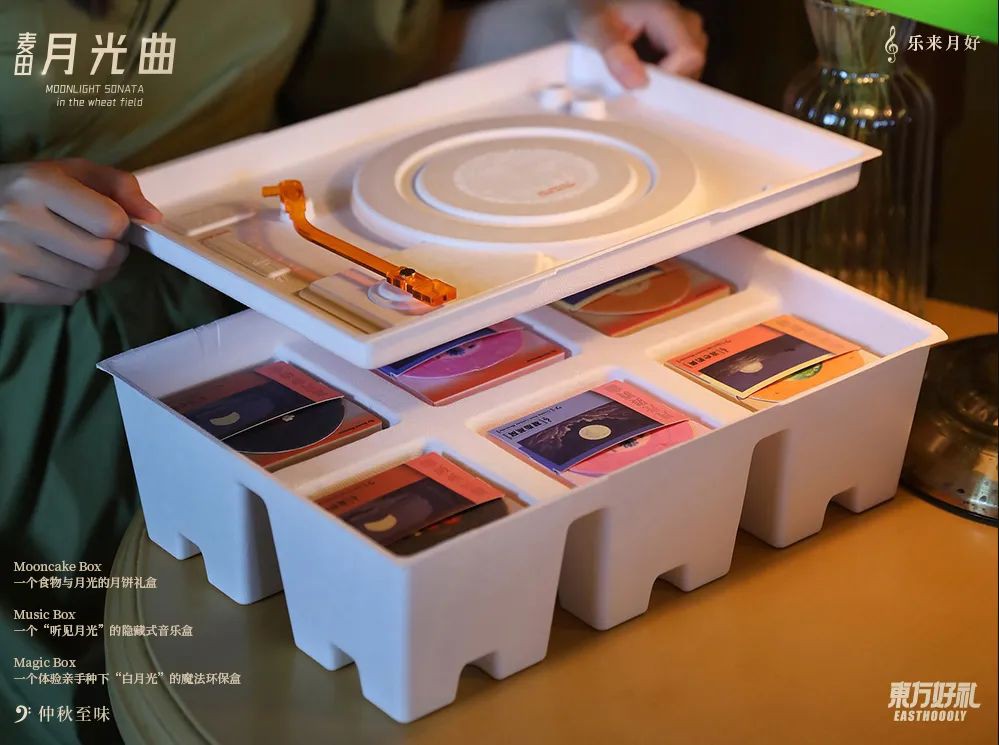 Este Mid- Caja de Regalo de Torta de la Luna de Moon de Atoño de Cancion de luz de la luz del campo es un pastel de luna de lector de registros de vinilo. La caissa de present es facha de materials amb environament e a de granas de papièr que se pòdon plantar. Après l'utilizacion, se pòt utilizar coma una olla de flors e plantar qualques pichonas flors.